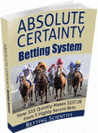 Absolute Certainty Betting System - PDF ebook download! Is it possible to pick winning horses just by glancing at the form guide? It seems like a million-dollar question but now there's an answer to this riddle. You see...the Betting Scientist has come up with an ingenious method to pick out winners just by looking at the form. And his method has landed winners paying $37.60 from a $1 bet. That's huge! Imagine spending just 3 minutes glancing at the form and picking out winners. This would possibly be the quickest selection method ever created. Find out for FREE how the Betting Scientist applies this amazing method.